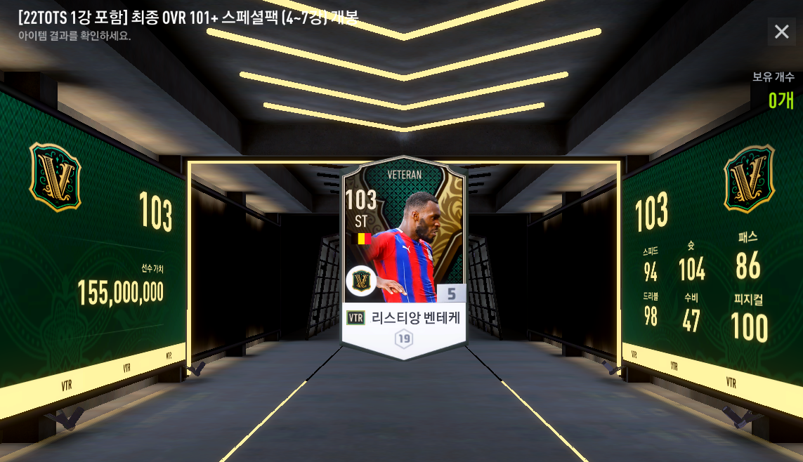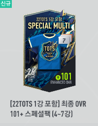 보상으로는 ovr 101+ 스페셜 팩과 BP카드를 주네요.