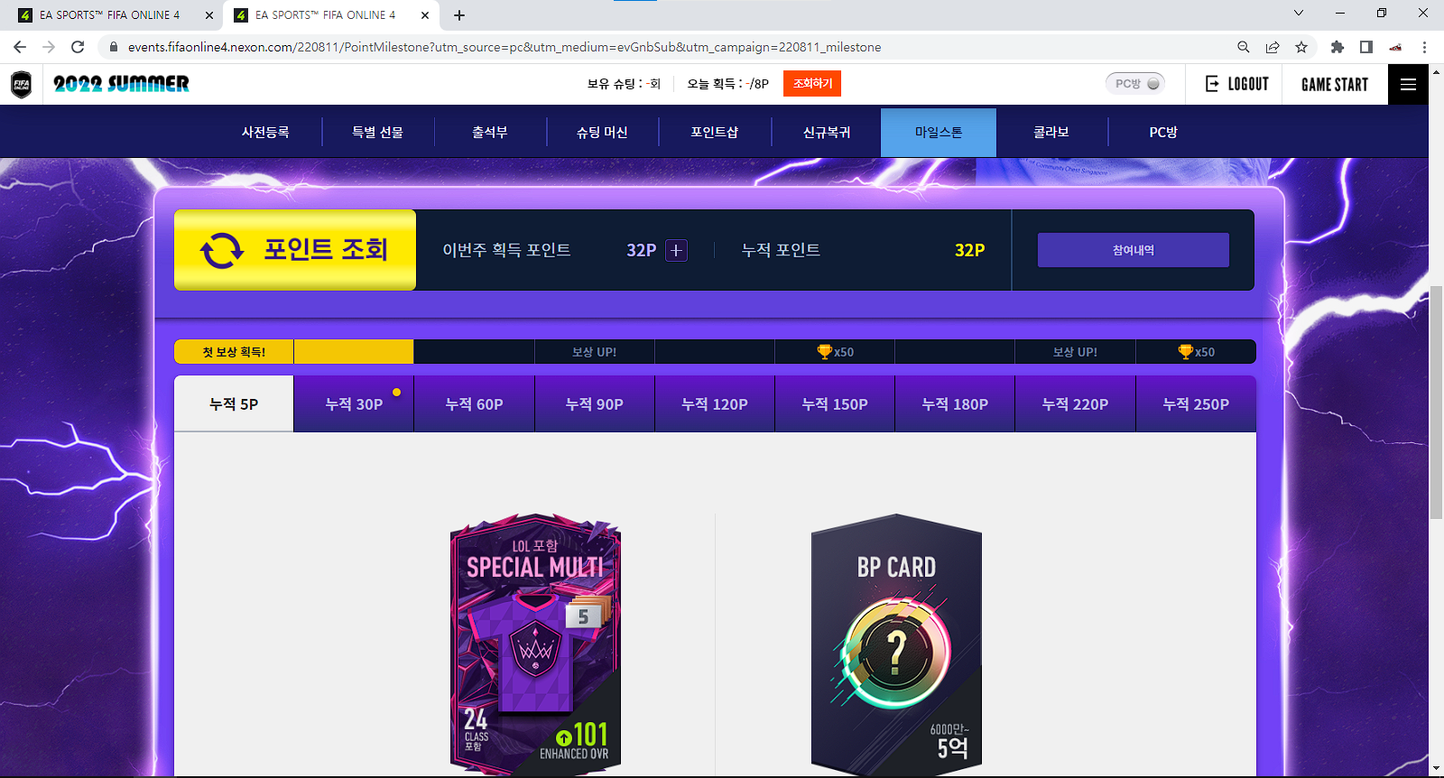 피파 온라인 4 마일스톤 250p 보상 개봉!! (2) | 2022.08.06 |
