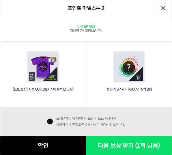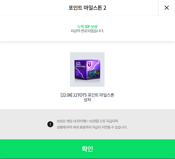 30포인트 보상으로는 포인트 마일스톤 상자를 주네요.