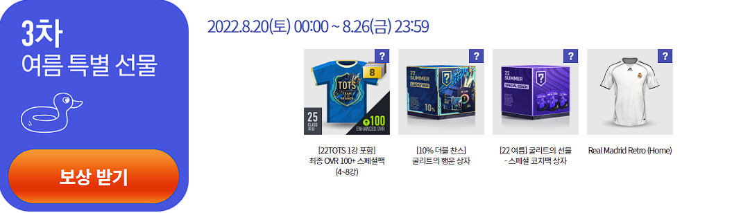 피파4 스페셜데이 8월 13일 보상 개봉 (0) | 2022.08.14 |