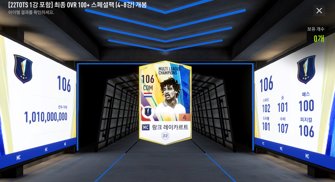10% 확률로 [ 22 TOTS 1강 포함 ] 최종 OVR 100+ 스페셜 팩 (4~8강)과 BP팩 두 개다 얻을 수 있다고 하네요.