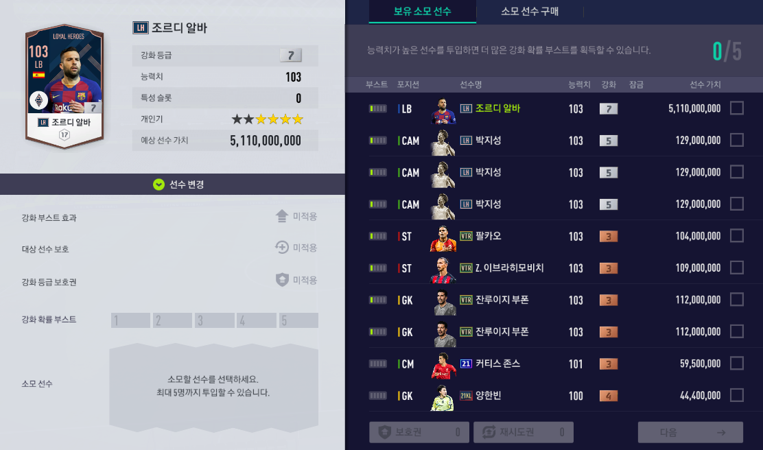 강화 부스트 이벤트를 맞이하여, 제 팀 선수를 강화시켜 보려고 합니다.